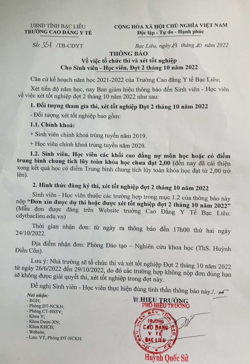 Tổ chức thi và xét tốt nghiệp đợt 2 tháng 10 năm 2022