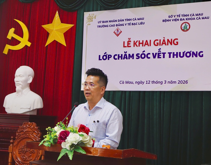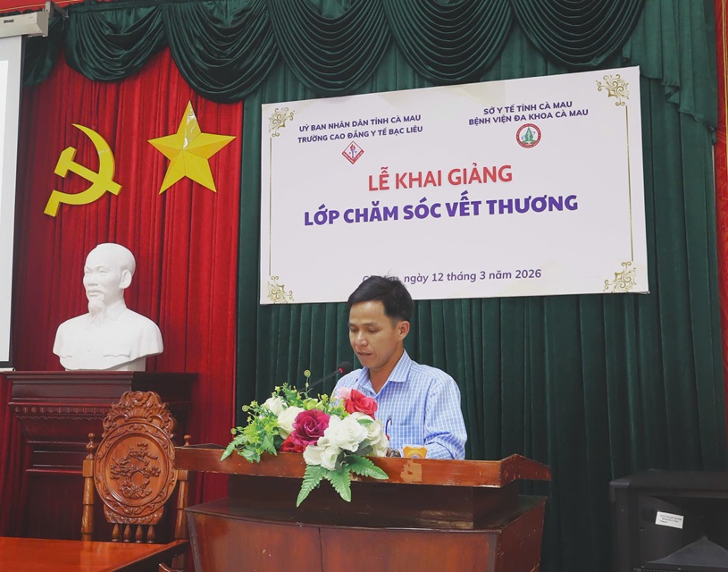 Ngày 12/3/2026, Trường Cao đẳng Y tế Bạc Liêu phối hợp với Bệnh viện Đa khoa Cà Mau long trọng tổ chức Lễ khai giảng lớp đào tạo “Chăm sóc vết thương” dành cho cán bộ y tế đang công tác tại Bệnh viện Đa khoa Cà Mau.