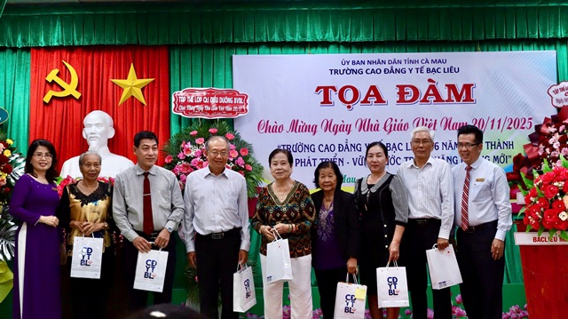 Ban Giám hiệu Trường CĐYT Bạc Liêu tặng quà tri ân cho các thế hệ lãnh đạo, giảng viên, viên chức, người lao động qua các thời kỳ đã có nhiều cống hiến cho sự hình thành, phát triển của Trường CĐYT Bạc Liêu.